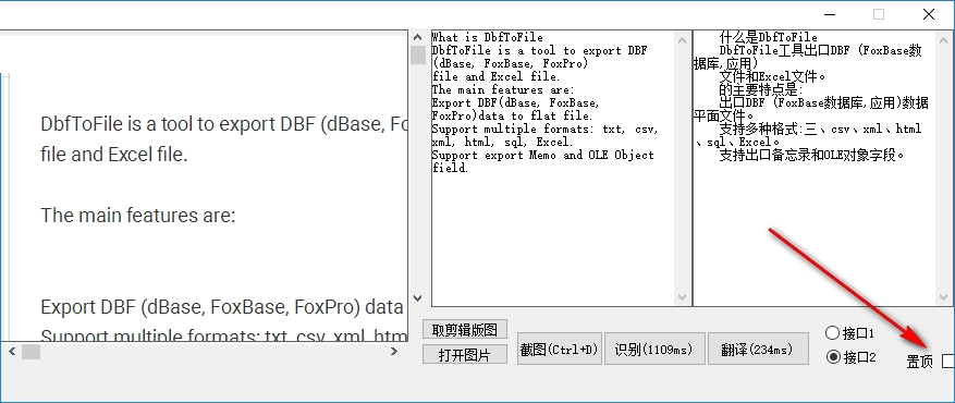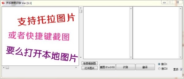 4、支持置顶显示,可以将齐乐捷图识字显示在窗口主界面