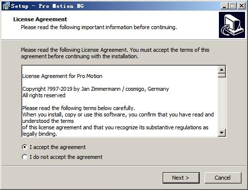 1、双击“pro-motion-ng.exe”出现协议,选择i accept