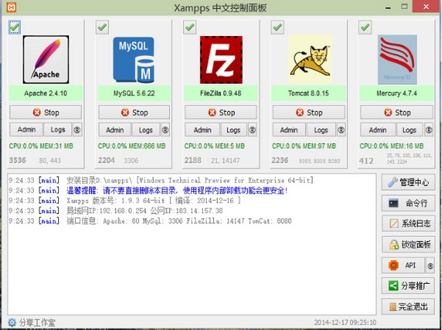 XAMPPS是一款功能强大的PHP环境搭建工具,能够帮助用户在创建PHP环境的时候更加容易,简化了开发环境的配置流程,节约了PHP研发人员的时间。使用此工具可以快速搭建php环境,一键之下完成apache, php, mysql, phpmyadmin的安装工具, 省心省力。有需要的朋友欢迎下载!