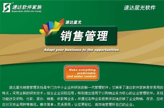 速达星光商品销售软件官方版是一款商品销售经营管理软件。速达星光商品销售软件官方版包含了商品采购、商品入库、商品信息管理、商品调拨、商品销售、仓库管理、仓库预警、仓库明细查询、权限管理、财务管理以及订单管理等主要功能。速达星光商品销售软件可以随时备份系统中的数据。