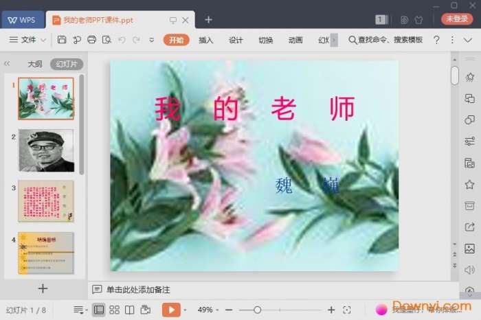 我的老师ppt课件为学生们在学习这篇课文的时候提供一个科普类型的内容,让你在使用的时候可以更好的了解这篇课文所要表达的含义。如果你想更好的学习这篇课文,欢迎来体验!