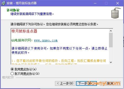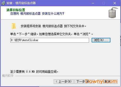 1、在本站下载楼月鼠标连点器软件,解压之后双击.exe,出现一个安装向导界面,点击“下一步”继续