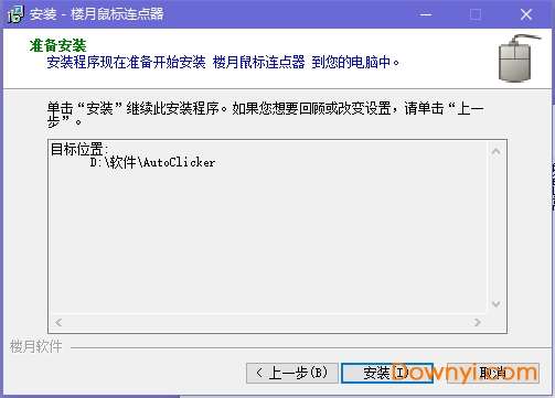 4、楼月鼠标连点器准备安装在您的计算机,点击“安装”即可