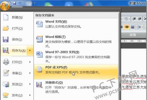 5、然后再一次点击左上角的Office按钮,在弹出的选项中点击另存为,在二级菜单中点击PDF或XPS选项。