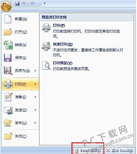 2、在打开的菜单选项中,点击右下角的【Excel选项】。