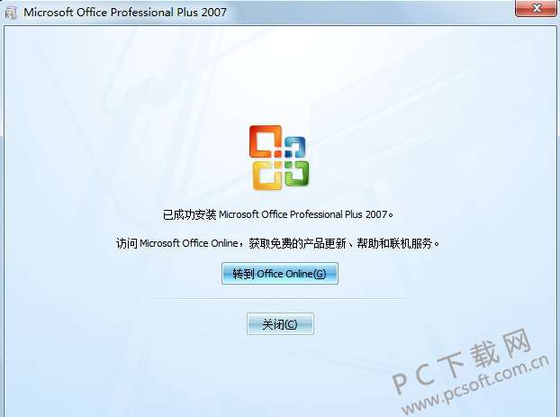 8、Office2007安装完成,点击【关闭】退出软件安装。