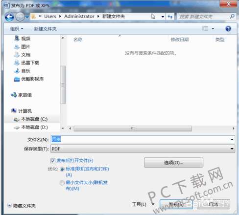 6、再打开的另存为PDF或XPS窗口中,输入您要保存的文件名,输入完成后点击发布就可以了。