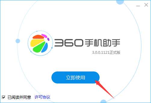 1、在PC下载网下载360手机管家官方版的压缩包,解压后,双击exe文件,进入安装界面,点击立即使用