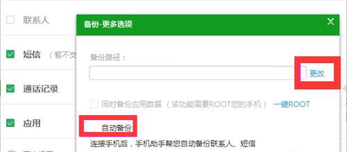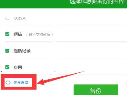 进入手机备份页面后,选择你所需要进行备份的内容,这个时候点击左下角的更多设置。点击更改来选择备份的位置,这样可以让我们下次更加容易找到我们所备份的位置。选择备份位置将自动返回备份页面,点击备份,等待备份完成点击完成即可。