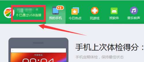 通过数据线将手机和电脑进行连接,打开手机助手后,我们会看到手机和电脑已通过USB连接。
