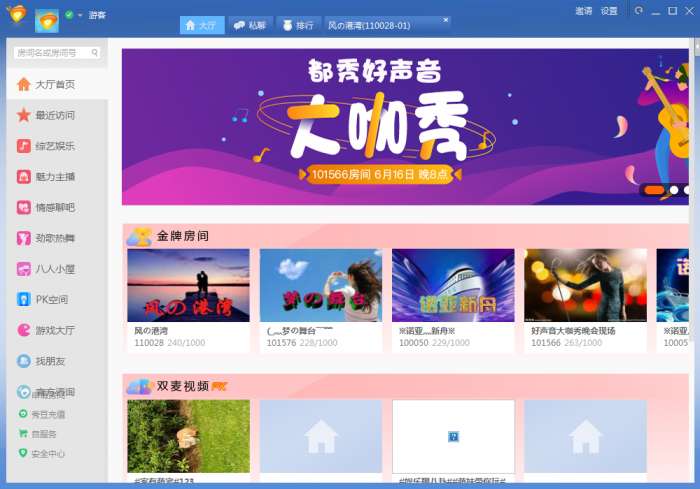 a.打开都秀客户端后,在都秀大厅里点击你想进入的频道类型。