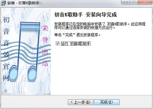 9.点击完成,初音k歌助手软件安装成功