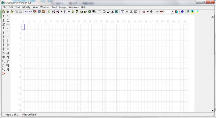 在窗口的左边有左列工具栏,其中包含了一些常用的符号,例如减时线,高低音标号等等。