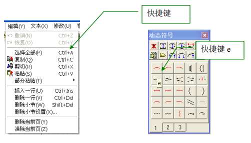 很多菜单选项都有快捷键。您能够使用快捷键来迅速的执行这些功能。来查看这些菜单选项的快捷键,您可以点击菜单选项,相应的快捷键会出现在其右边。对于在左列工具栏和浮动窗口中的图标,您只需将鼠标停留在该图标上片刻,其快捷键将会自动显示。如下所示: