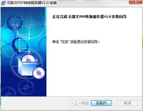 7.点击完成,石鼓文PDF转换服务器软件安装成功