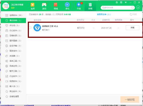 方法二:安装并打开360软件管家,在卸载选项的列表中找到微课制作工具,点击卸载即可