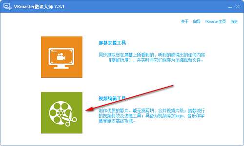 答:1.打开VKmaster微课大师,打开视频编辑工具。如下图: