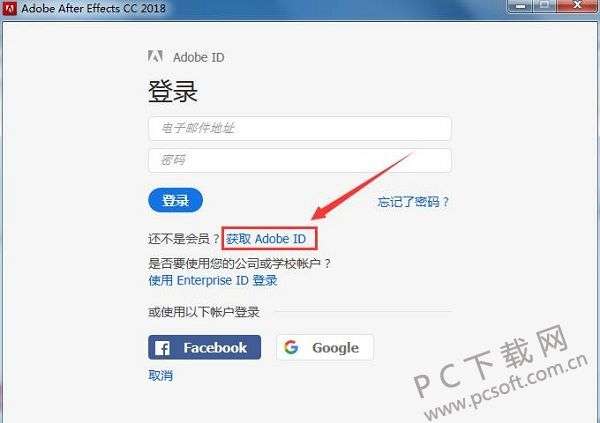 3、有AdobeID的用户可以直接输入账号密码登录,没有的用户点击“获取AdobeID”。