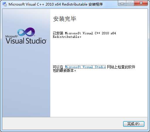 4.点击完成,vc2010 x64位软件安装成功