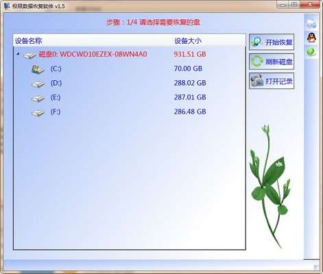 1. 打开软件后,选择需要恢复的盘,点《开始恢复》