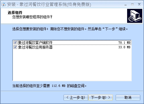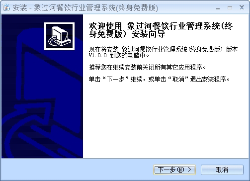 1、在PC下载网下载象过河餐饮管理软件官方版压缩包,然后进行解压,解压后,双击exe程序,进入安装界面,然后点击下一步
