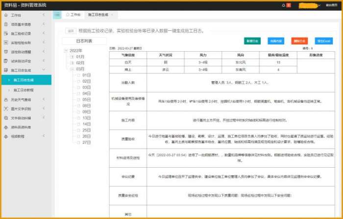 资料易施工日志自动生成软件特点
