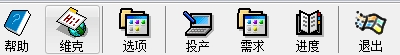 5、辅助功能,拥有帮助、维克、选项、投产、需求、进度等功能。
