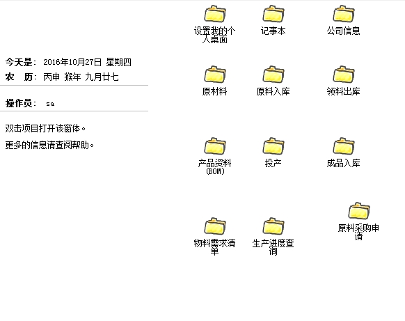 4、我的桌面,拥有记事本、公司信息、原材料、原料入库等一系列功能,还能够自主进行添加。