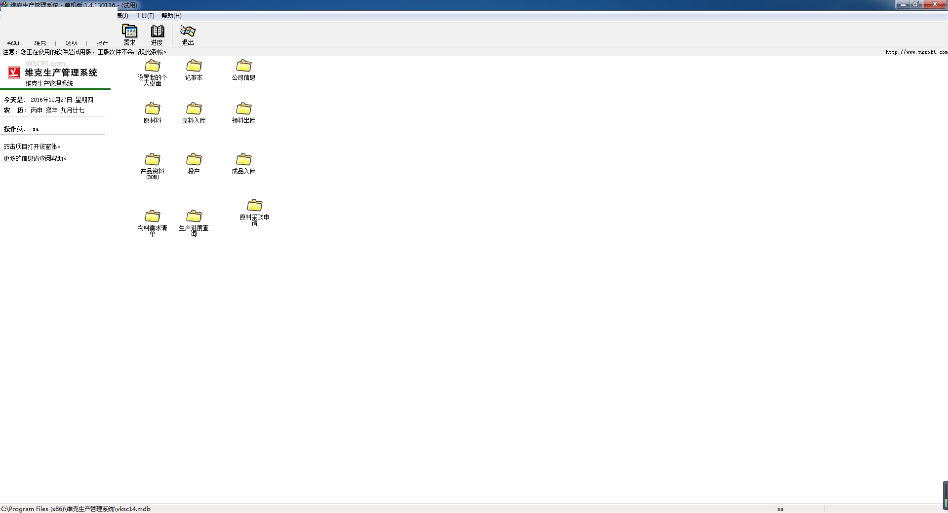 3、进入维克生产管理软件主页面。