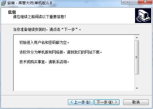 2、进入库管大师的安装向导界面,点击下一步;