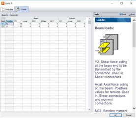第三步,再次回到Joints栏中,点击Edit工具,在跳出的节点信息对话框中切换到Loads页面,刚才定义好的荷载工况自动排列在页面,依次键入轴力,剪力及弯矩。