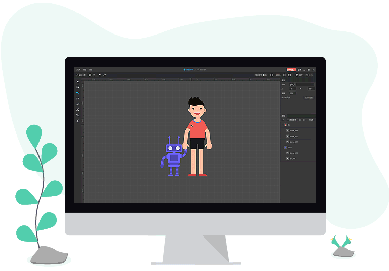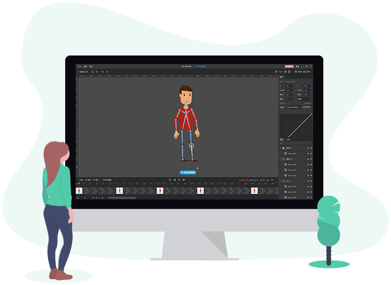 打破图形与2D角色动画的限制,添加骨骼到PSD分层图层,通过简单易用的骨骼动画工具和骨骼模板,轻松将图片(PNG和PSD格式)转变为2D动画角色,为视频、网页等提供更有趣的角色素材。