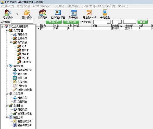 邦仁会员管理系统官方版是一款商业会员管理软件。邦仁会员管理系统官方版包含了新建会员、全部会员、会员类别管理、消费记录、消费列表、会员充值、充值列表、兑换积分、新建交往、交往列表、新建反馈、销售趋势分析等主要功能。邦仁会员管理系统可以随时备份系统中的重要数据。