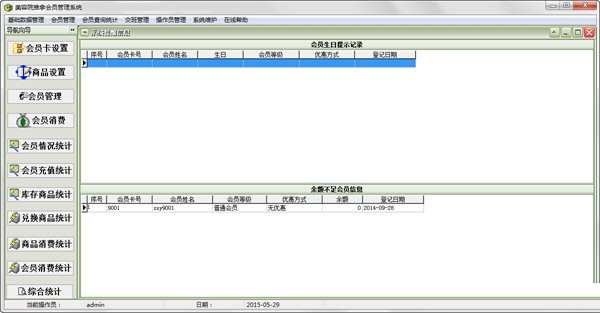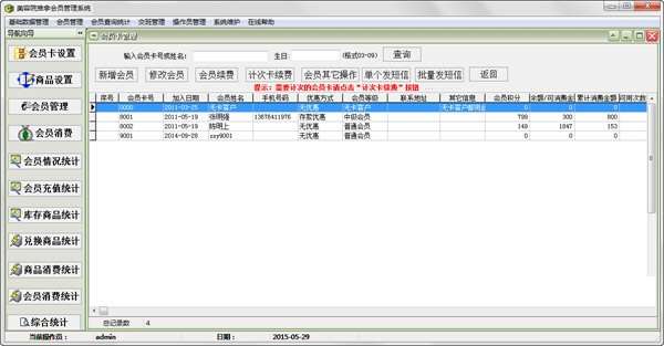 6.提供会员消费统计,充值统计和营业统计等功能。