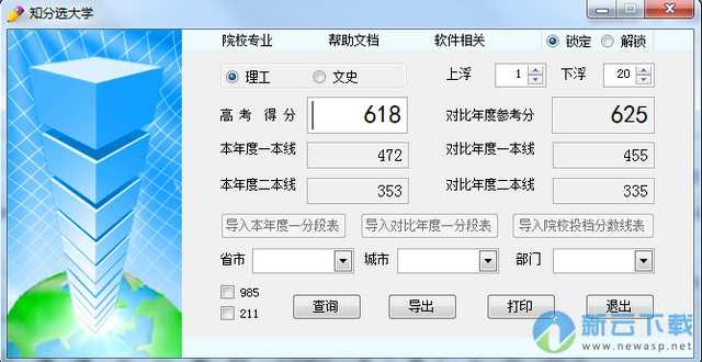 三、输入高考得分,设置上下浮动分数,进行“查询”、“导出”、“打印”等操作。