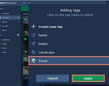 使用Movavi的图片管理器为图像文件添加标签,以便您轻松浏览照片库。