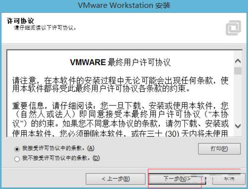 3、许可协议界面如下所示,选择“我接受许可协议中的条款”后,选择“下一步”