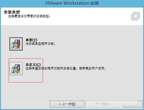 4、安装类型界面如下所示,选择“自定义”按钮: