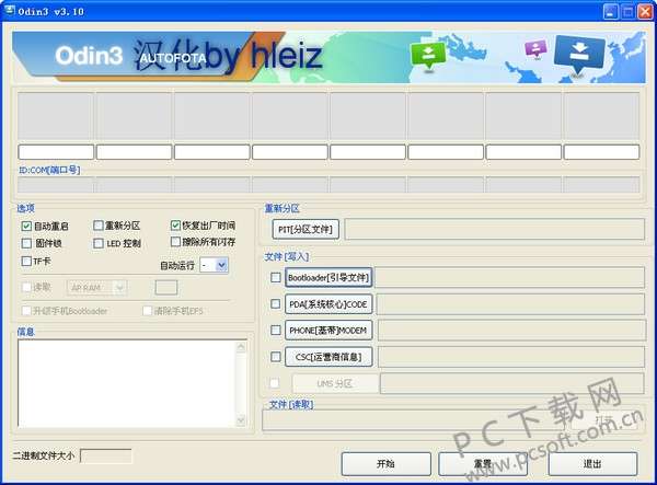 2、打开3.10 3、手机完全关机,待手机完全关机后,三星手机同时按住音量键减+home键+开机键,然后自动进入刷机模式,也叫“挖煤模式”然后用usb数据线连接电脑,连接成功后Odin3如下图 4、在Odin3点击pda选择你下载好的刷机包,这时候会卡一会,稍等出现蓝色框的文字,然后点击start开始刷机,刷机完毕后会自动重启 odin3刷机工具更新日志 此次更新优化了已有的内容,修复了已知的bug! 小编推荐:本站还为您准备了多款相关软件如:手机号码吉凶测试、XY越狱助手、91手机助手等等,快来下载吧!∨ 展开