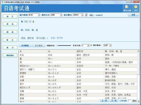 日语考试通是一款专业强大的日本语学习软件,日语考试通中包含了关于日语词汇、语法、阅读、听力等方面的测试,合适各级别的人群使用,通过使用本软件可以帮助您顺利通过日本语能力测试。