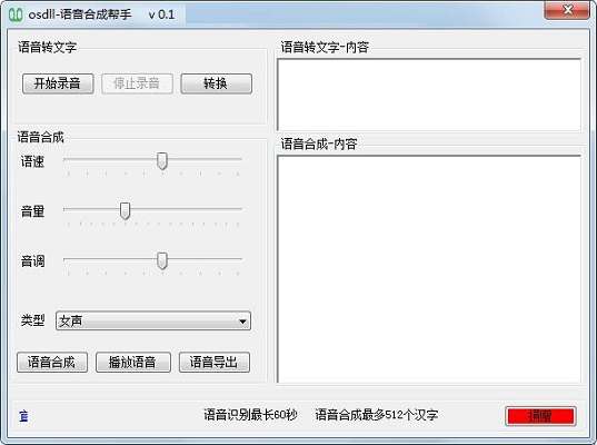 提示 :语音转文字多长录制60秒,语音合成最多512个汉字