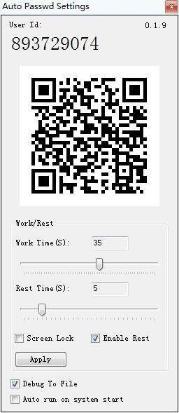 一款提供简单的密码设置功能,可以让用户在软件上设置口令,这款软件功能很简单,打开软件就可以显示一个二维码,随后可以在软件设置工作的时间长度,可以设置休息的时间长度,默认的时间单位是“秒”,可以设置电脑工作35秒后休息,可以设置电脑休息5秒继续工作。快来PK游戏网下载试试吧。