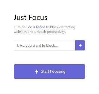 Just Focus 超级简单,打开后就是一个输入框,输入你想要临时屏蔽的网站网址,就行了。当想要专心的时候,点击Start Focusing 就开始计时。