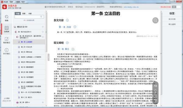 3、软件的目的主要是方便法律工作者高效查询办案过程中需要的一切现行法律法规和内部规定,同时注有书签、附有读书笔记编注栏,亦便于使用者日常研读、学习和领会。