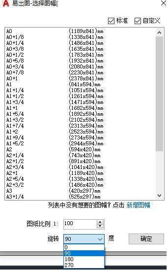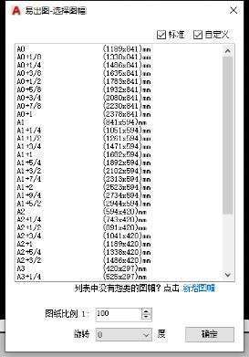 可以在插入图幅的对话框中设置图幅比例及插入图幅选择的角度
