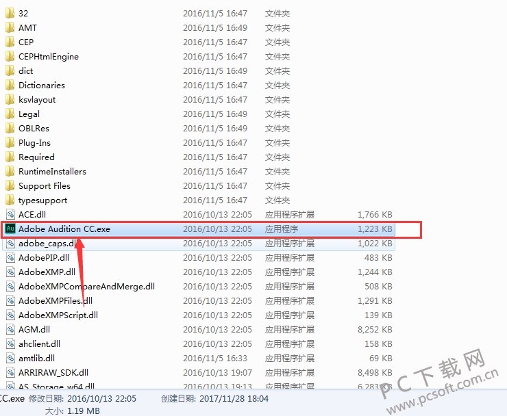 2、双击打开文件夹,找到“Adobe Audition CC.exe”文件,如下图,这个是打开的Adobe Audition CC2017的图标,直接就可以进行使用,软件已经破解,可永久免费使用,无需再进行复杂的操作。