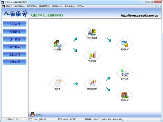 人信商业进销存官方版采用极富人性化设计的导航图界面,系统的模块化程度较高,众多功能经过精心设计,巧妙地集成于一个模块中,使业务操作变得一目了然,简单快捷。