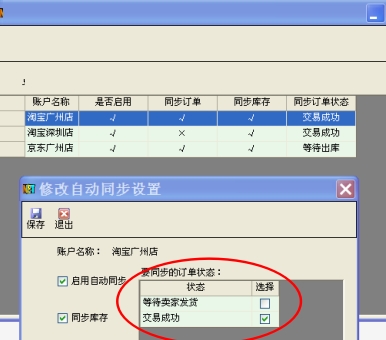 同步订单可选择需要同步的订单状态。这个操作属于自动同步