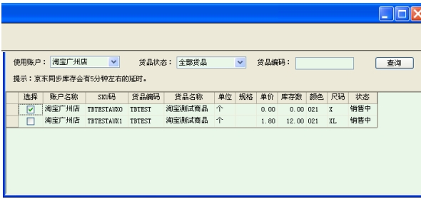 将软件中已经和电商货品匹配了的货品的库存信息更新到对应的电商货品(京东更新库存会存在5分钟左右延时)
