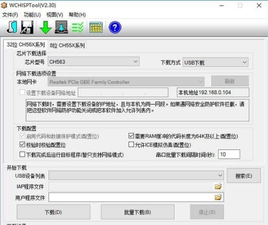 WCHISPTool是一款单片机烧录软件,当你需要升级单片机以及修改系统数据的时候就可以通过这款软件执行烧录,内置芯片下载功能,你可以选择芯片型号直接下载,可以选择CH55X和CH56X系列单片机下载,直接利用USB就可以下载需要升级的内容;WCHISPTool烧写的过程还是非常简单的,内置大量的功能,支持通过USB口串口以及网络对WCH的MCU进行用户代码的下载和对EEPROM的直接读和写,并能对用户代码进行版本的校验!